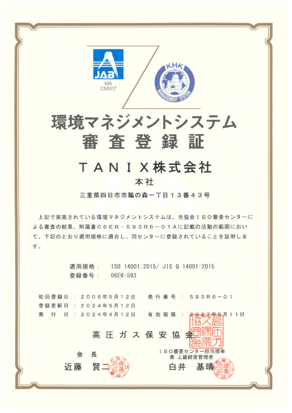 TANIX株式会社では、2006年5月にISO14001を認証取得いたしました。